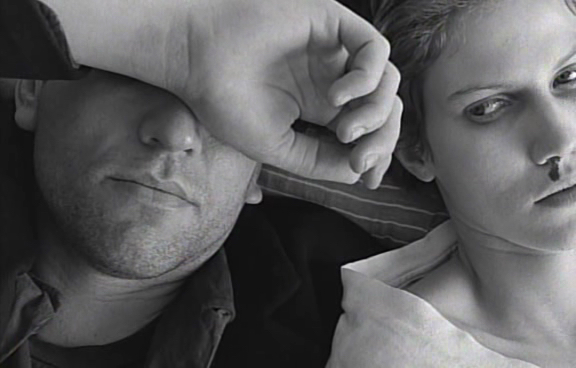 It turned out that kids were uninterested in shooting grainy, black-and-white, short films. Pixelvision was discontinued within a year. But a limitation for mass markets was an opportunity for filmmakers, who could work with the camera’s aesthetic. “The primitive video pixelvision effect is used to empty any given scene of depth and to create a cramped and claustrophobic feel to each frame,” author Jack Halberstam said, according to the Film Society’s program notes. Referring to Cecilia Dougherty and Leslie Singer’s 1993 hour-long film JOE-JOE, Dougherty continues that the “superficiality of pixel works beautifully with the Joe-Joe project because this video is precisely about the multiple layerings of identity and the way that one identity (lesbian) can be simply superimposed upon another (gay) to create a totally altered visual and aesthetic reality.” Dougherty pushes Pixelvision’s low-tech images by splitting screens, blurring shots, tinting frames, and inverting the monochromatic color scheme.